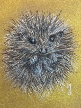 formaat 18x24 cm gemaakt met pastelpotloden en achtergrond met panpastels.