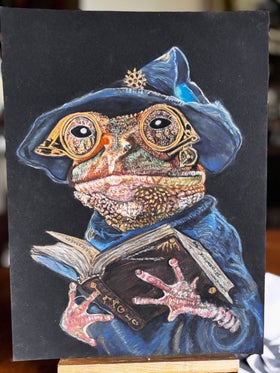 Mijn geleerde kikker hij past zo in een Harry Potter film..